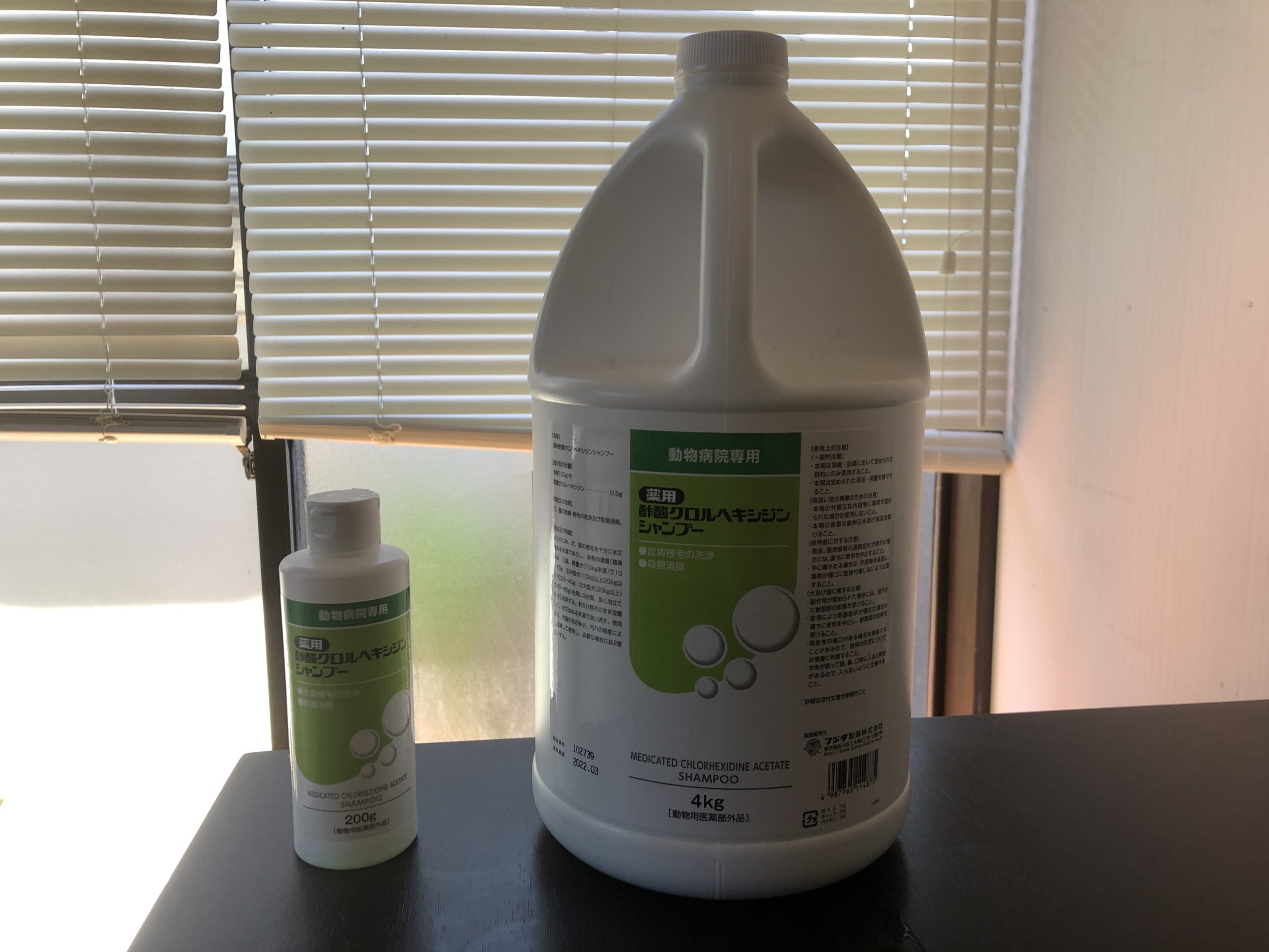 獣医にシャンプーをすると悪化することを相談したときに、フジタ製薬の薬用酢酸クロルヘキシジンシャンプーを紹介されました。